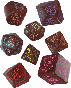 - 15 losowo wybranych kości spośród najpopularniejszych wzorów Q-Workshop, w różnych rodzajach i kolorach.