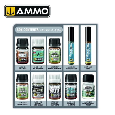 Ammo: Beginners Set - Weathering to idealny dla każdego, kto chce rozpocząć przygodę z weatheringiem — techniką postarzania i nadawania realizmu modelom. W komplecie znajdziesz wszystkie niezbędne produkty do tworzenia efektów brudu, kurzu, rdzy i zużycia, które ożywią każdy pojazd, figurkę czy dioramę.
