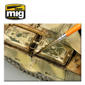 Ammo: Nature Effects to preparaty nadające się idealnie do tworzenia efektu zabłocenia i błotnistych terenów. Można je mieszać z gipsem, aby zwiększyć objętość i zmienić właściwości. Ammo: Nature Effects należy nakadać pędzlem lub aerografem, a następnie rozprowadzić czystym pędzlem zwilżonym Ammo: Enamel Odourless Thinner A.MIG-2018.