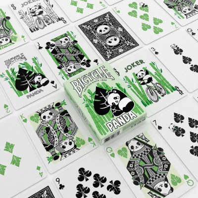 Zanurz się w spokojny, pełen uroku świat natury dzięki talii Bicycle Panda! To wyjątkowe wydanie łączy klasyczną jakość Bicycle z ciepłym, sympatycznym stylem inspirowanym jednymi z najbardziej uwielbianych zwierząt na świecie. Pudełko ozdobiono delikatnymi motywami bambusa, a cała talia emanuje przyjaznym charakterem, który od razu przyciąga uwagę przy stole.
