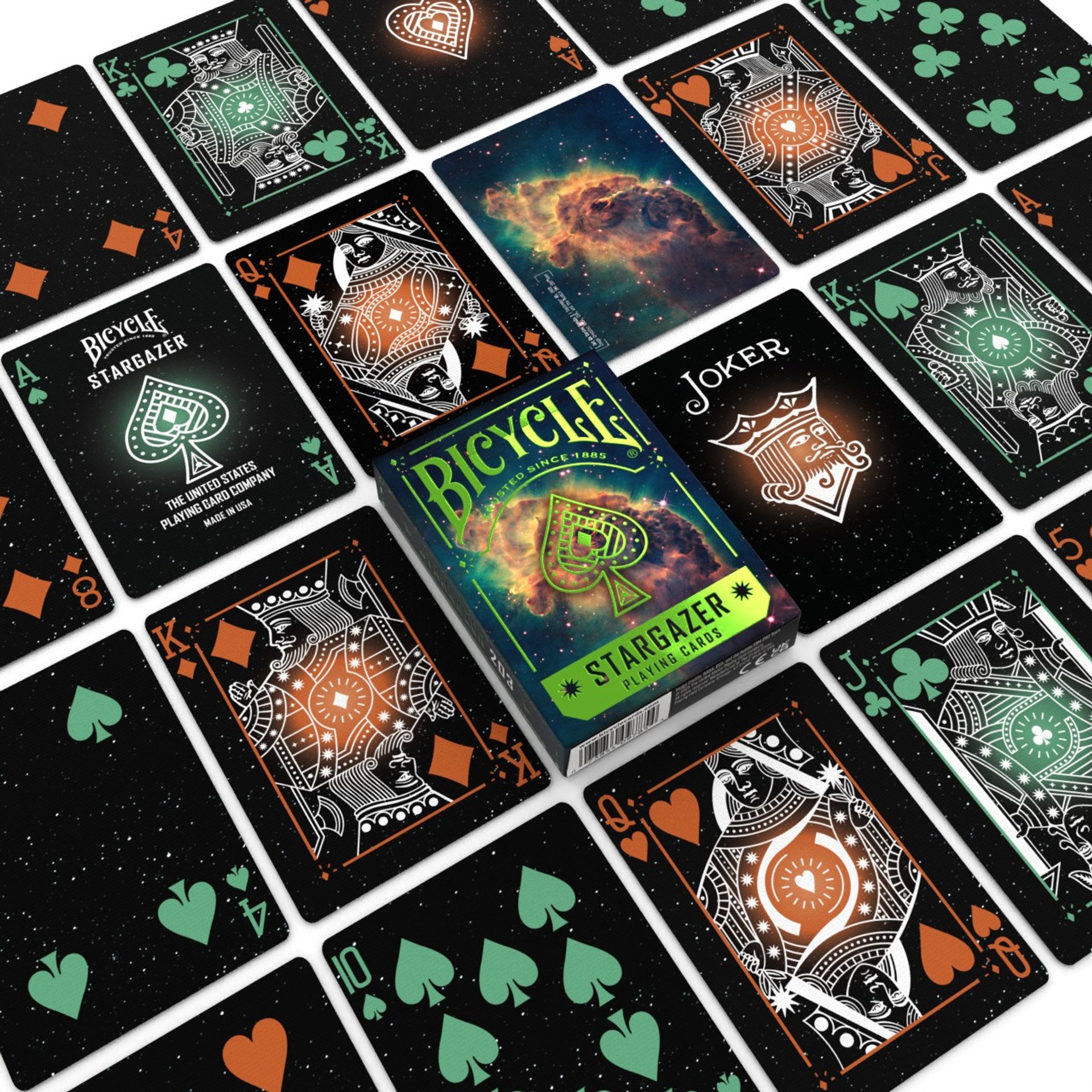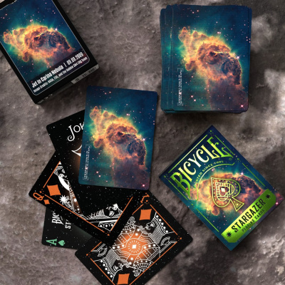 Poznaj talię Bicycle Stargazer 203 – wyjątkowy zestaw kart stworzony z myślą o miłośnikach kart, magii, kolekcjonowania i… wszechświata. Na rewersach kart znajdziesz obraz „Jet in Carina Nebula” zarejestrowany przez teleskop Hubble’a 13 kwietnia 2022 r. — każdy ruch tasowania to teraz mała podróż w przestrzeń.