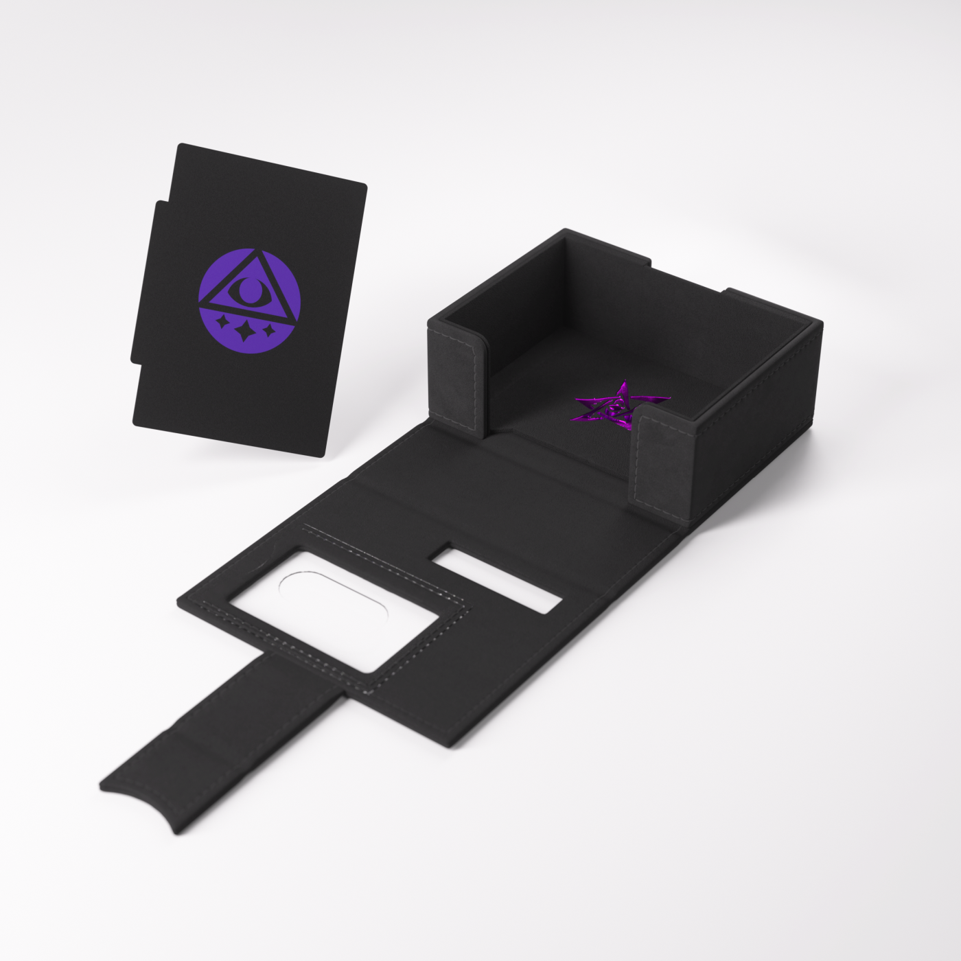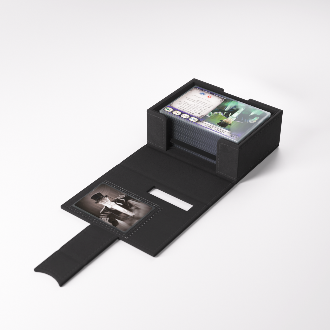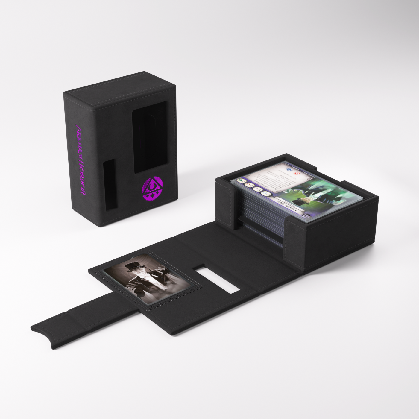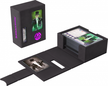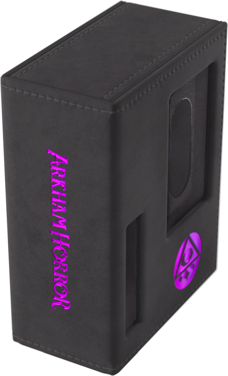 To oficjalnie licencjonowane pudełko zostało zaprojektowane specjalnie z myślą o potrzebach graczy. Rozmiar idealnie dopasowano do pełnej talii badacza, nawet zakoszulkowanej. Bez otwierania pudełka możesz łatwo rozpoznać swoją talię dzięki wycięciom prezentującym portret badacza, klasę, imię oraz cechę.