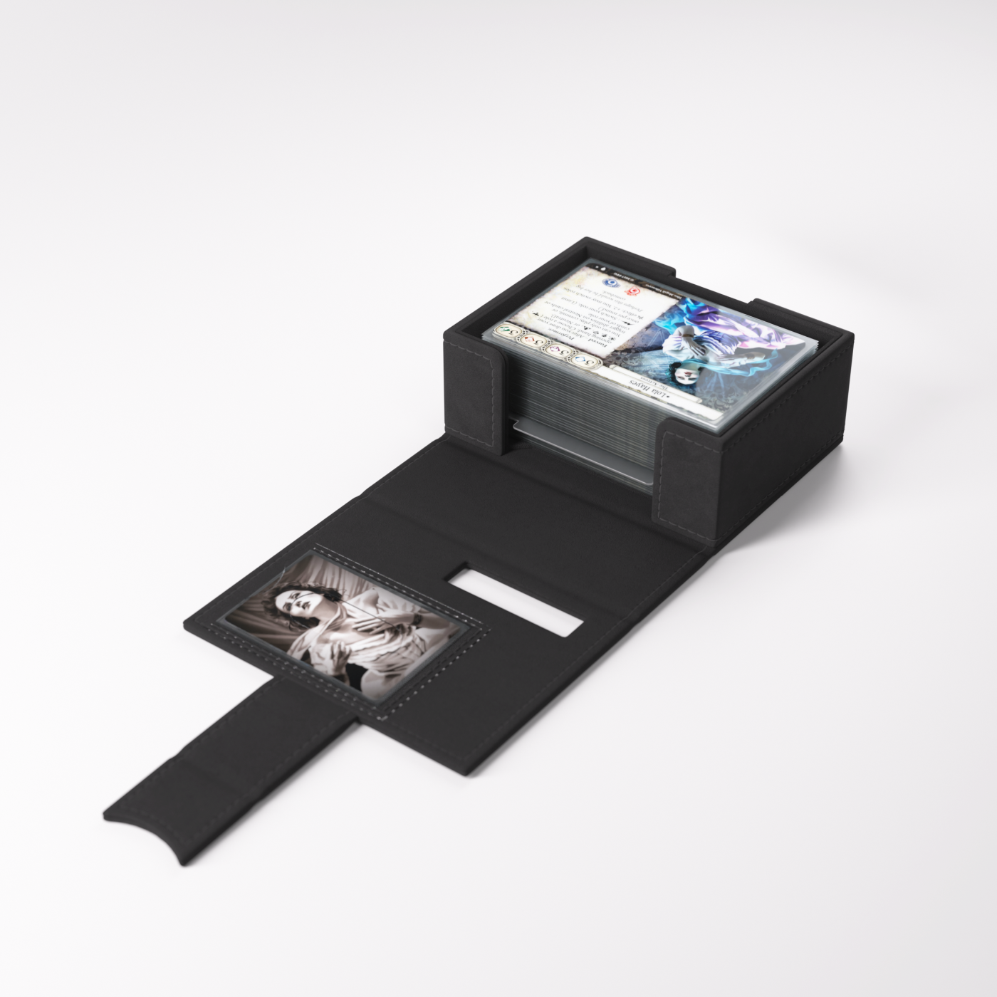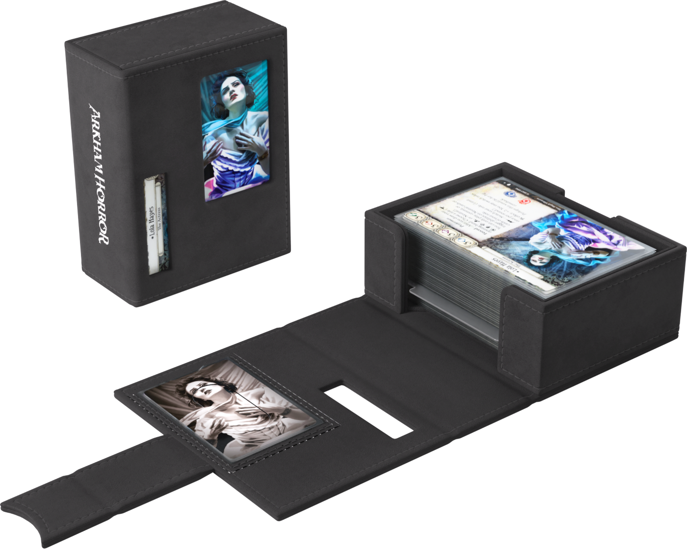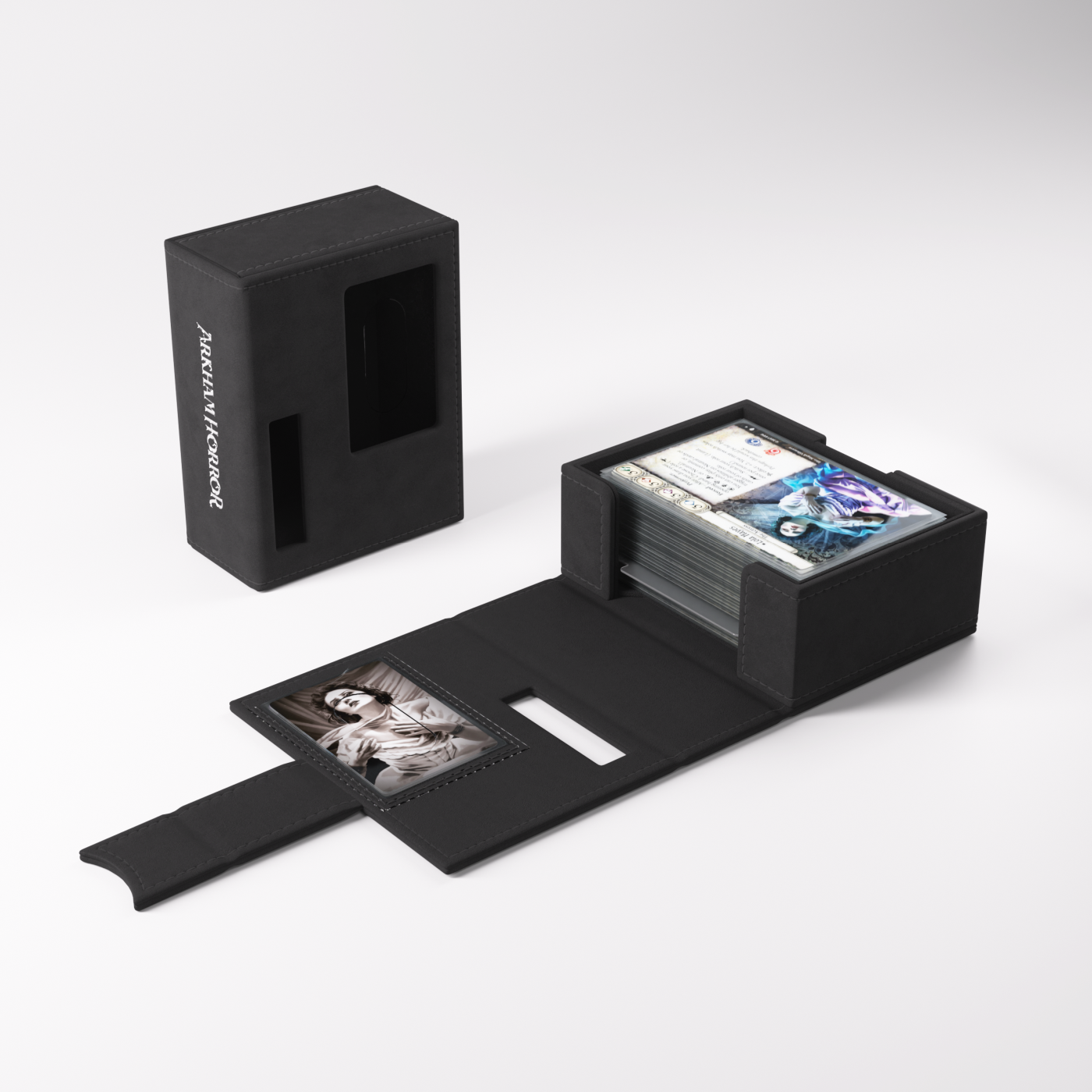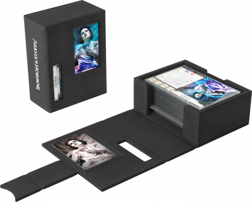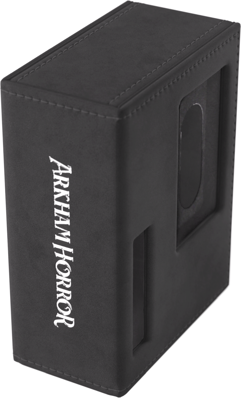 To oficjalnie licencjonowane pudełko zostało zaprojektowane specjalnie z myślą o potrzebach graczy. Rozmiar idealnie dopasowano do pełnej talii badacza, nawet zakoszulkowanej. Bez otwierania pudełka możesz łatwo rozpoznać swoją talię dzięki wycięciom prezentującym portret badacza, klasę, imię oraz cechę.