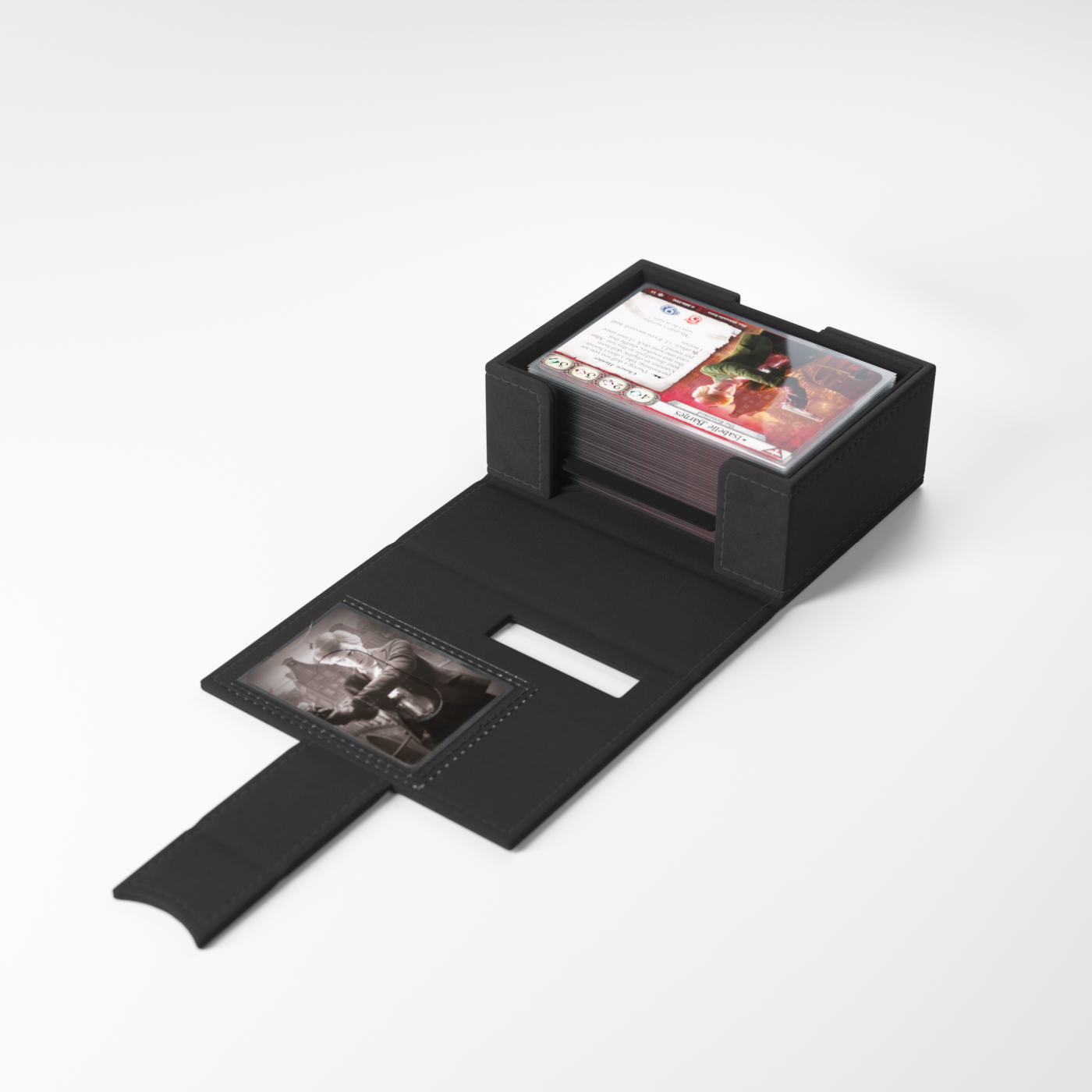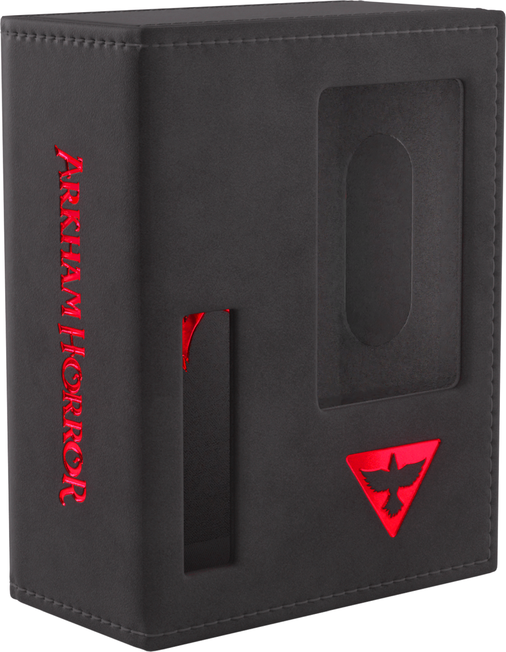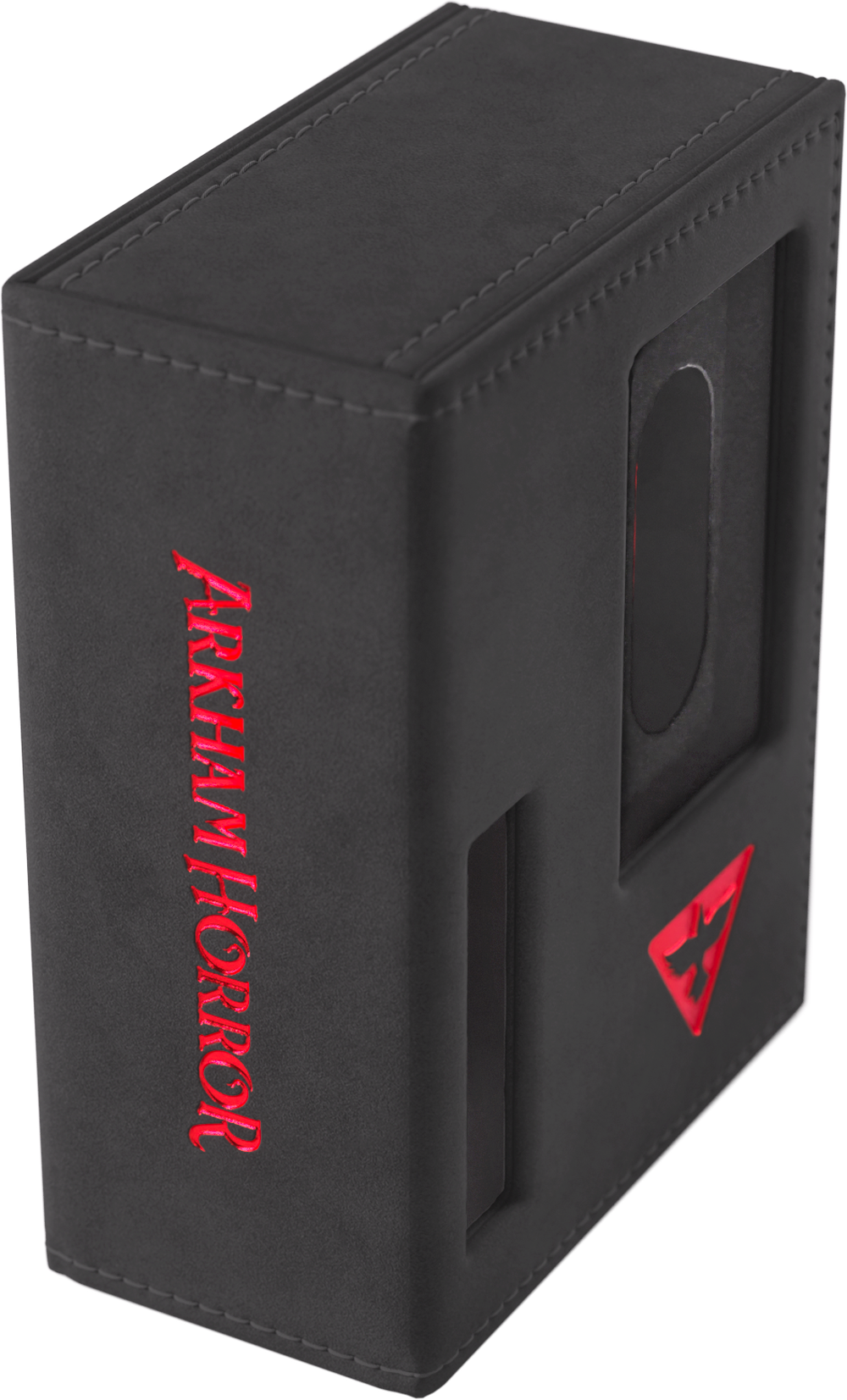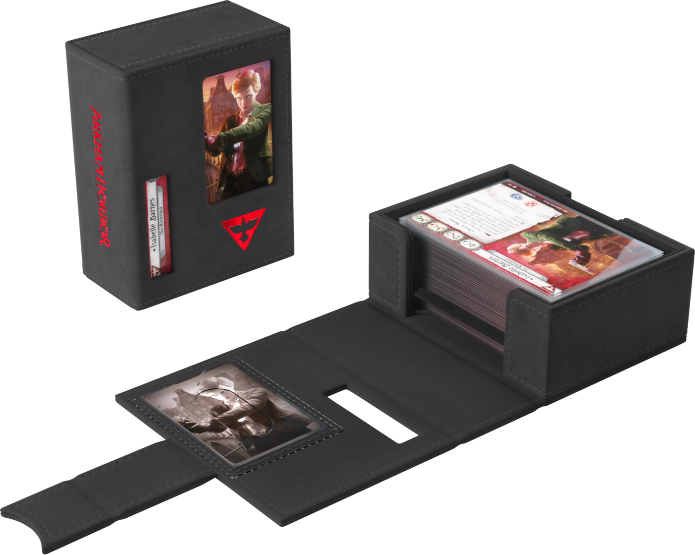To oficjalnie licencjonowane pudełko zostało zaprojektowane specjalnie z myślą o potrzebach graczy. Rozmiar idealnie dopasowano do pełnej talii badacza, nawet zakoszulkowanej. Bez otwierania pudełka możesz łatwo rozpoznać swoją talię dzięki wycięciom prezentującym portret badacza, klasę, imię oraz cechę.