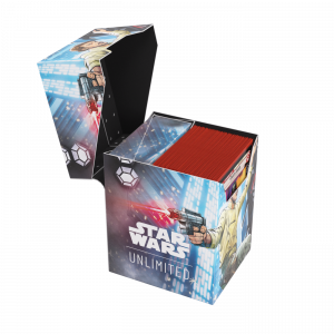 Pudełko składa się z dwóch komór, jedna przeznaczona jest na podwójnie zakoszulkowaną talię 60 kart, druga przechowa żetony i inne akcesoria. Pudełko jest także wyposażone w bezpieczny mechanizm zatrzaskowy, który chroni przed przypadkowym otwarciem, a jednocześnie umożliwia łatwy dostęp do talii. Każde pudełko dekoruje unikalna grafika, nawiązująca do bogatej historii uniwersum Gwiezdnych wojen.