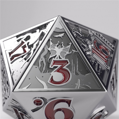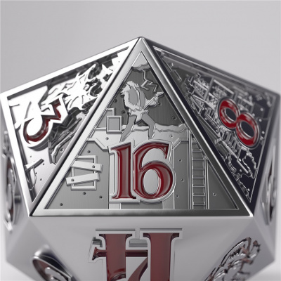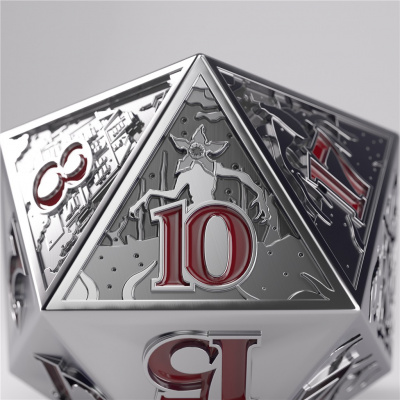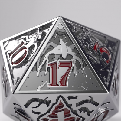 Dodaj stylu do swoich rzutów dzięki metalowej K20 inspirowanej legendarnym Hellfire Club z serialu Stranger Things! To akcesorium, które nie tylko przyciąga wzrok, ale daje niesamowitą satysfakcję przy każdym rzucie – idealne dla fanów klimatu Hawkins. Dlaczego warto? Ikoniczne nawiązanie – ciesz się klimatem Hellfire Club podczas każdej gry, rzucając kością, która wygląda, jakby należała do samego Eddiego Munsona! Metalowa wytrzymałość – solidne wykonanie zapewnia trwałość i satysfakcjonujące efekty przy rzucaniu. Unikalny design – idealna dla miłośników Stranger Things, wyróżnia się na stole dzięki szczegółowemu, klimatycznemu wzornictwu. Uniwersalne zastosowanie – świetna do sesji fabularnych i planszowych, ale także jako ozdoba kolekcjonerska.