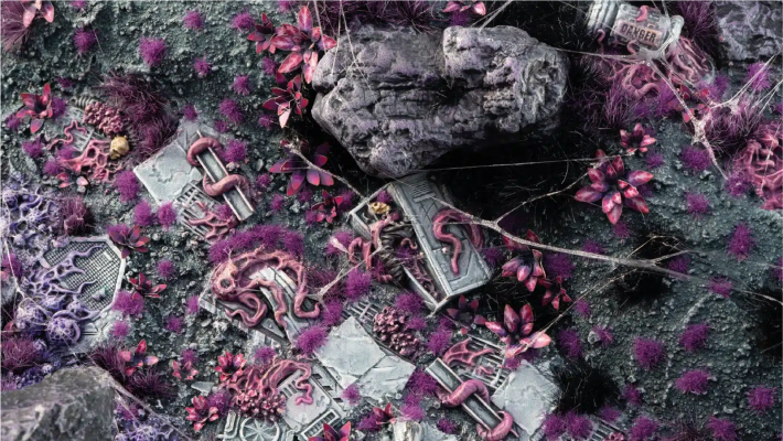 Zestaw idealnie sprawdzi się w projektach science-fiction, motywach inwazji xeno czy jako baza dla armii inspirowanych agresywną, obcą fauną — wyglądającą równie estetycznie, co groźnie. Z pomocą broszury i filmu instruktażowego krok po kroku poprowadzisz swoje minatury przez proces budowy i wykończenia podstawki — od montażu elementów po osadzenie tuftów i roślin.