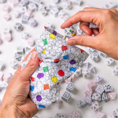 Zanurz się w pięknie harmonii z mieszkiem na kości Full Art Dice: Origin. Inspirowany idealnymi kształtami wielościanów, ten elegancki mieszek to ukłon w stronę matematycznej precyzji i estetyki geometrii. Subtelny wzór obrysów i wypełnień brył, splecionych w doskonałą całość, tworzy inspirującą kompozycję, która oddaje ducha gier fabularnych.