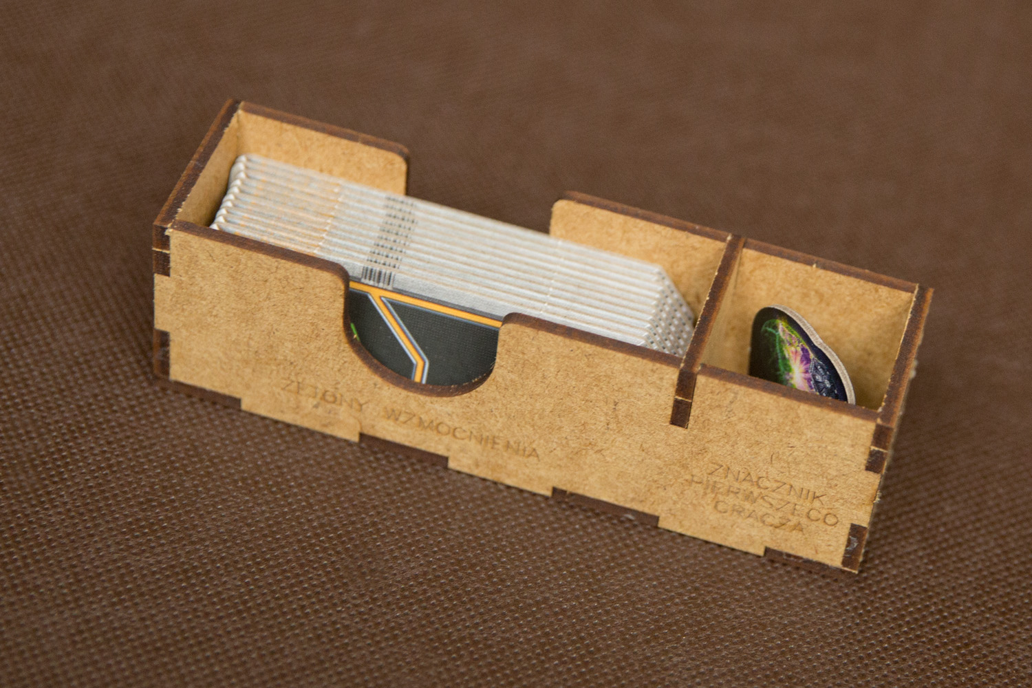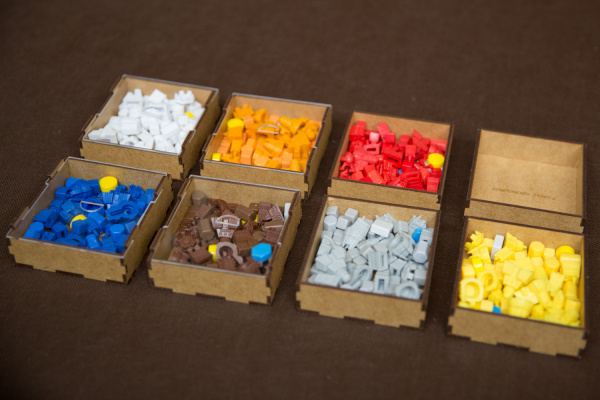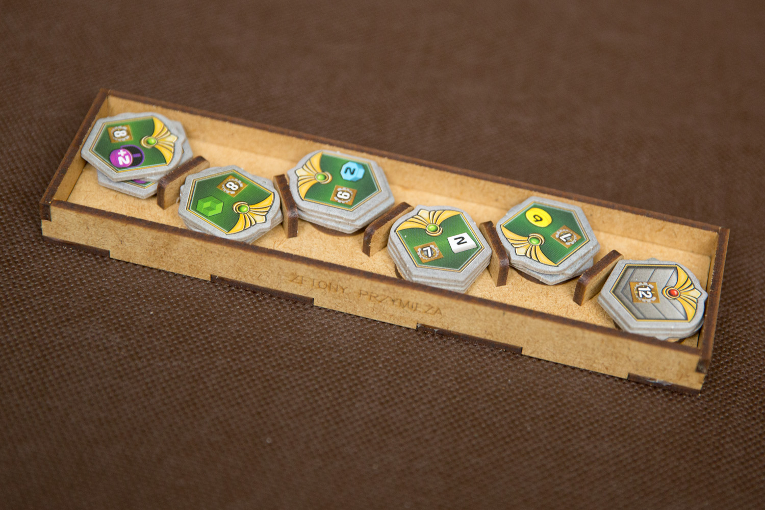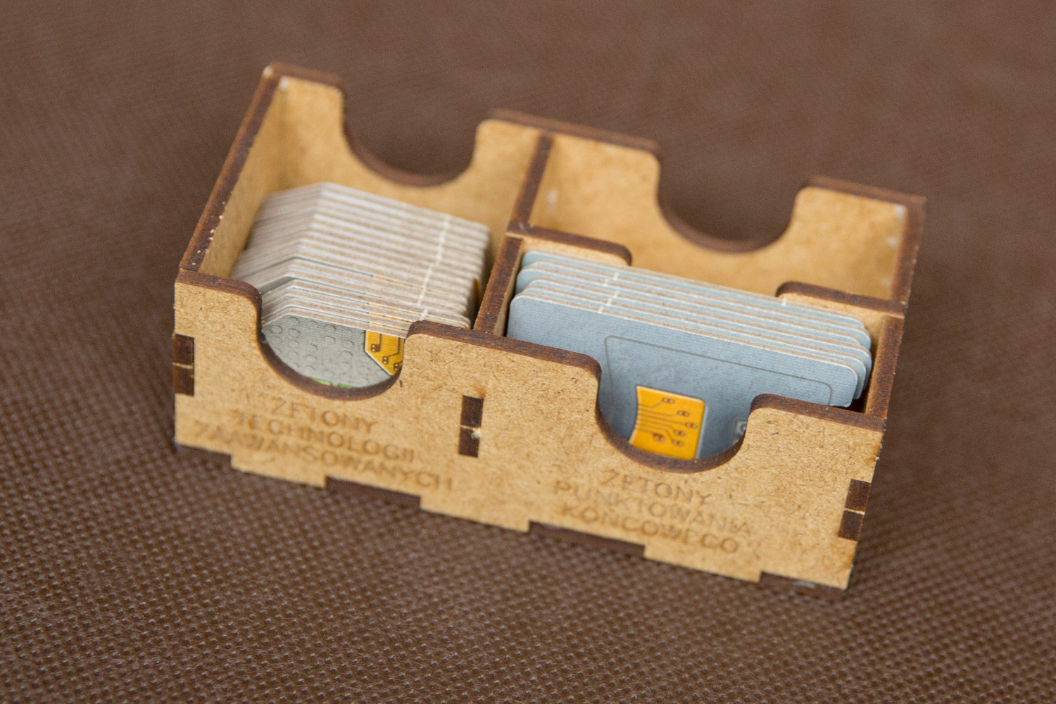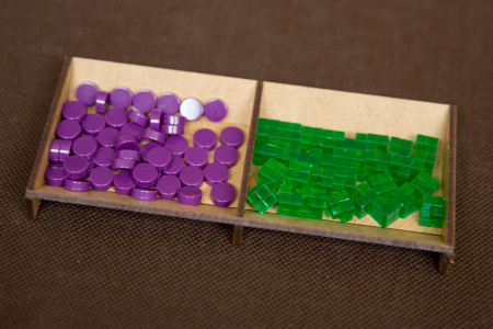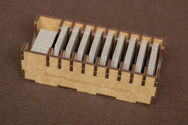 - pojemniki na żetony i znaczniki pomagają utrzymać ład na stole,