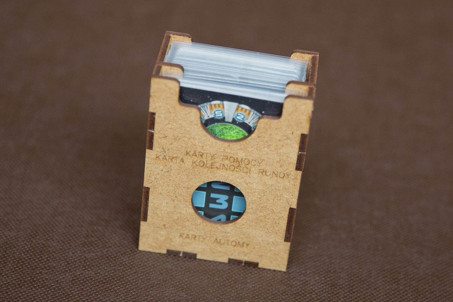 - 1 pojemnik na karty: 7 Kart Frakcji, 1 Karta Terraformacji, 4 karty pomocy, 1 karta kolejności rundy, 17 kart Decyzji Automy,