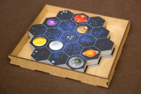 Insert do gry strategicznej Projekt Gaja, pasujący zarówno do wersji z Portal Games, jak i z Games Factory. Mieści karty w koszulkach klasy Premium bez ograniczenia grubości. Pudełko z insertem zamyka się całkowicie.