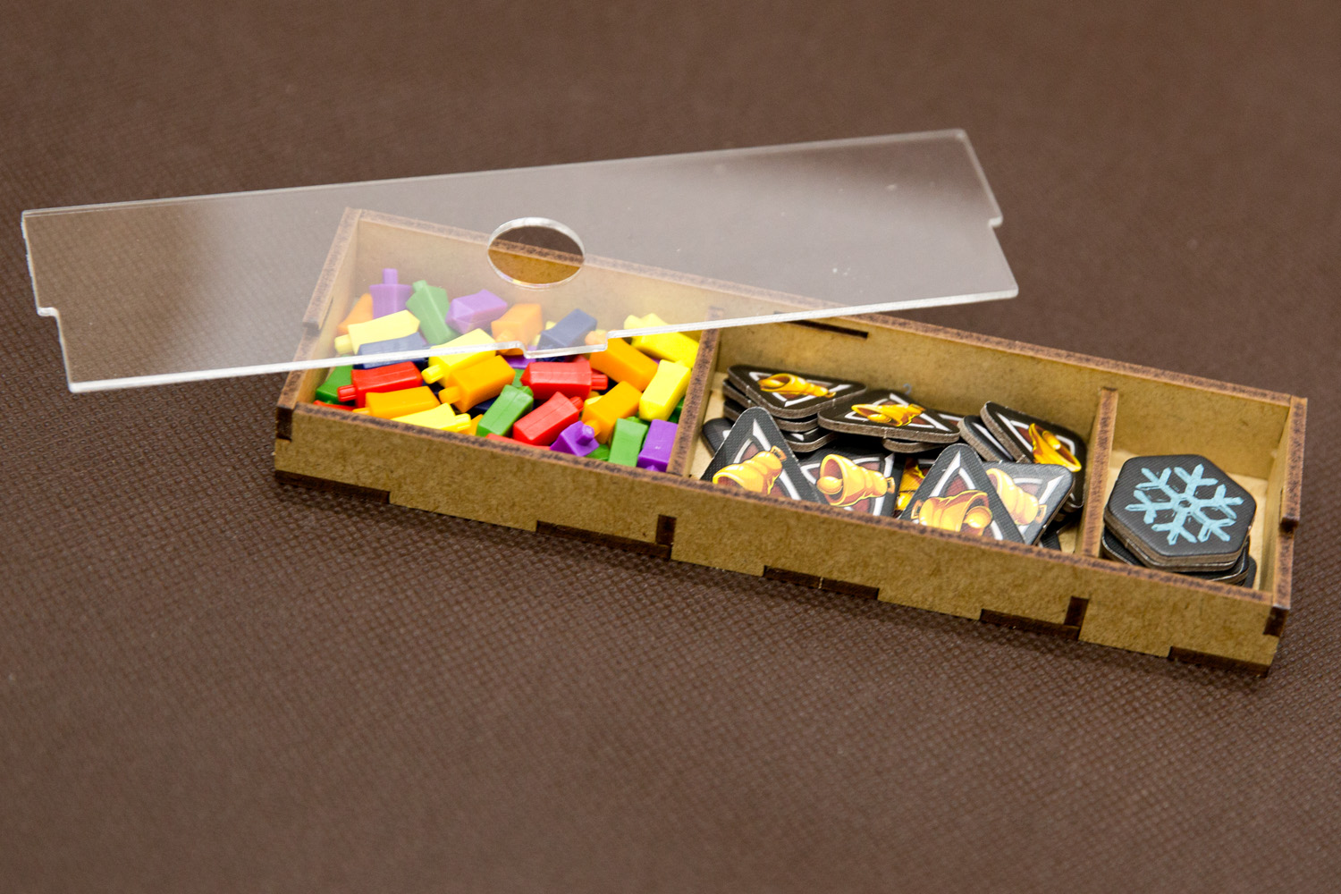 - 1 pojemnik zasuwany pleksą na wskaźniki graczy oraz znaczniki hałasu i zamrożenia,