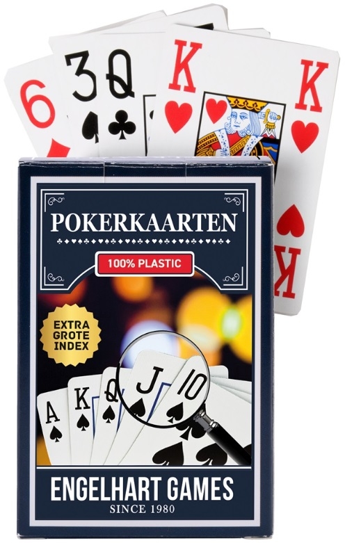 Wysokiej jakości talia 100% plastikowa do pokera i innych gier karcianych. Najlepszy stosunek jakości do ceny. 4 powiększone indeksy w każdym narożniku karty.