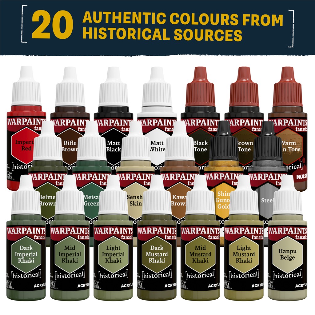 The Army Painter: Historical - World War II - Imperial Japanese to zestaw farb dedykowany modelarzom, którzy pragną tchnąć życie w figurki Cesarskiej Armii Japońskiej. Paleta barw idealnie odwzorowuje mundury polowe, oporządzenie oraz ślady walki w trudnych, tropikalnych warunkach na wielu frontach Pacyfiku.