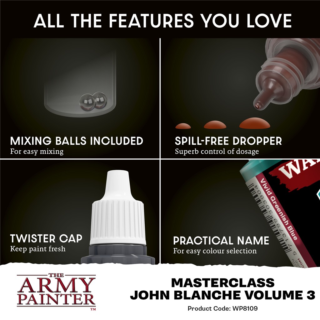 Przygotuj się na prawdziwą podróż w mroczne klimaty z farbami Masterclass - John Blanche - Volume 3. Zestaw ten, został stworzony we współpracy z legendarnym artystą i pozwoli Ci odkryć odcienie tajemnicy.