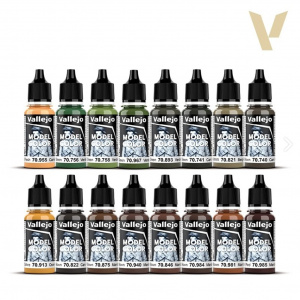 Vallejo: Model Color - Figure - German Camouflage Uniforms WWII to zestaw 16 farb akrylowych, który został zaprojektowany z myślą o wiernym odwzorowaniu niemieckich kamuflaży, takich jak mundury Wehrmachtu, Luftwaffe czy Waffen-SS. Wysokiej jakości pigmentacja i łatwa aplikacja czynią te farby doskonałym wyborem zarówno dla początkujących, jak i zaawansowanych modelarzy.