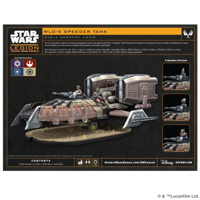 WLO-5 Speeder Tank to ciężka, wszechstronna jednostka najemników, która doskonale sprawdzi się w każdej aktualnej frakcji. Co więcej, może być również używana jako opcja ciężkiej jednostki w armii Shadow Collective Battle Force, dodając jeszcze więcej mocy!
