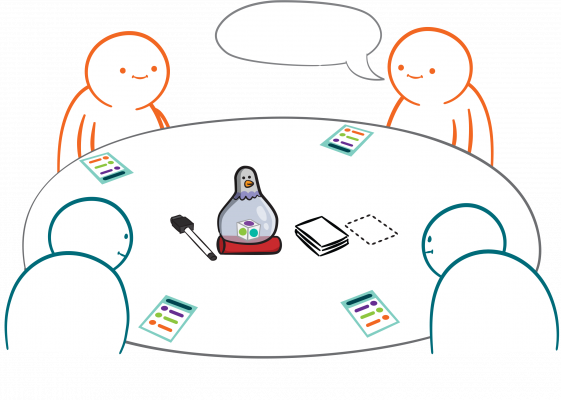 - Gdy gracz ukończy zadanie, przesuwa gołębi szejker na drugą stronę stołu. Gracz przeciwnej drużyny potrząsa nim i wykonuje swoje zadanie.