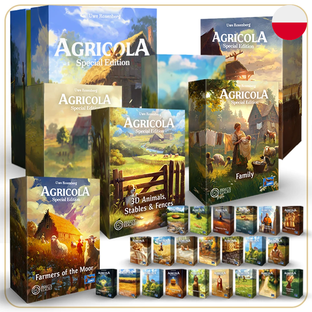 Agricola: Edycja Specjalna daje nowe życie słynnej grze planszowej Uwe Rosenberga, wprowadza nowe, oszałamiające ilustracje, zwiększa walory użytkowe i dodaje mnóstwo elementow. Ta edycja ostateczna powstała dzięki współpracy Lookout Games z Awaken Realms, zawiera ona wszystkie dotychczas wydane dodatki oraz nowość - dodatek "Nawadnianie", w którym gracze muszą zarządzać zapasami wody niezbędnej do utrzymywania i rozwijania farm.