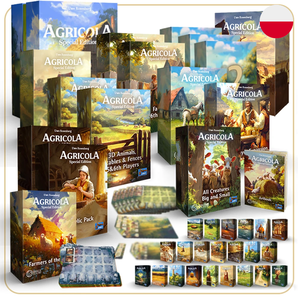 Agricola: Edycja Specjalna daje nowe życie słynnej grze planszowej Uwe Rosenberga, wprowadza nowe, oszałamiające ilustracje, zwiększa walory użytkowe i dodaje mnóstwo elementow. Ta edycja ostateczna powstała dzięki współpracy Lookout Games z Awaken Realms, zawiera ona wszystkie dotychczas wydane dodatki oraz nowość - dodatek "Nawadnianie", w którym gracze muszą zarządzać zapasami wody niezbędnej do utrzymywania i rozwijania farm.