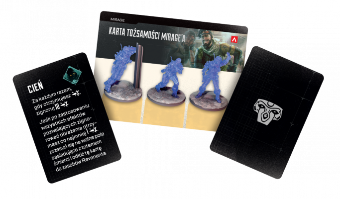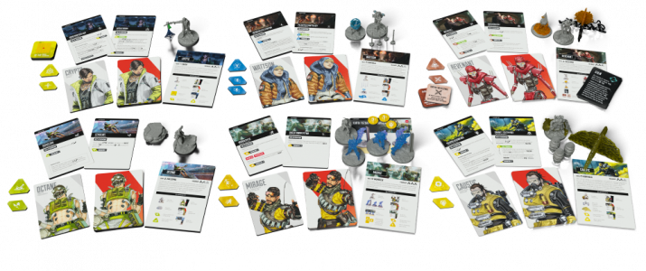 Apex Legends: Gra planszowa - Drużyna 1 wprowadza do gry drużynę 6 nowych legend (Caustic, Crypto, Mirage, Octane, Revenant i Wattson) oraz elementy niezbędne każdej z nich, w tym figurki legend i efektów legend oraz karty i wypraski.