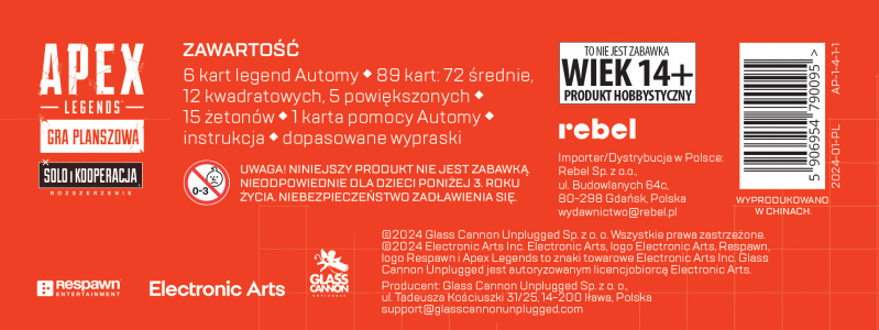 Do rozgrywki wymagana jest podstawowa wersja gry: Apex Legends: Gra planszowa.- Autor: