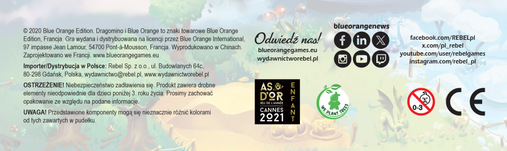 Dragomino to strategiczna gra dla całej rodziny inspirowana zasadami klasycznego domina, w pełni dostosowana do potrzeb młodszych graczy. Podczas zabawy będziemy dobierali kolejne kafelki terenów i umieszczali je w swoich strefach eksploracji. Grupowanie terenów tego samego rodzaju pozwoli nam na zdobywanie żetonów smoczych jaj. W niektórych kryją się wyjątkowe okazy!
