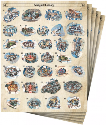 Usuwalne winylowe naklejki lokalizacji, budynków, kampanii, ulepszeń oraz pieczęci. Można je łatwo usunąć, nie pozostawiając żadnych śladów. Zestaw ten pozwala na ponowną grę, wyzerowanie postępów lub odsprzedanie gry.