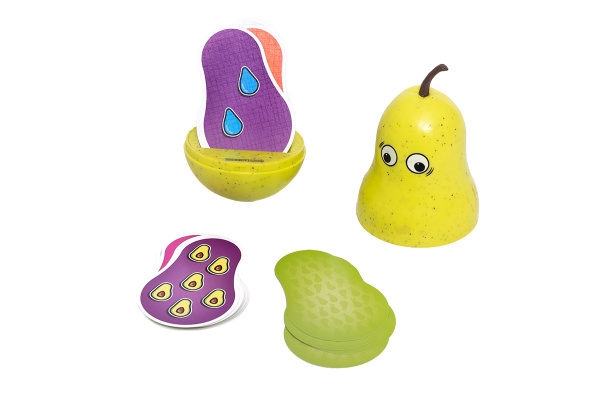 Gotowi na szalone wyzwanie, które sprawdzi Wasz refleks i spostrzegawczość? Gibka gruszka to zwariowana gra dla całej rodziny, w której dopasowujemy karty pod względem kolorów, kształtów i liczby elementów. Perfekcyjnie łączy proste zasady i angażujący mechanizm, dzięki któremu na uczestników czeka mnóstwo śmiechu i dobrej zabawy! Na czym to polega? Na początku każdy z graczy otrzymuje własny stos, z którego dobiera określoną liczbę kart. Aby rozpocząć, należy rozkołysać gruszkę – jej ruch odmierza czas, więc powinniście bacznie ją obserwować! Pierwsza osoba kładzie obok gruszki wierzchnią kartę ze swojego stosu. Od tej pory zadaniem graczy jest pozbywanie się kart z ręki poprzez dopasowywanie ich do wierzchniej karty znajdującej się na środku. Karty możemy dopasowywać według koloru tła, rodzaju elementów lub ich liczby, ale uwaga – nie możemy użyć tej samej kategorii dwa razy z rzędu! Wszyscy grają równocześnie, więc sytuacja jest niezwykle dynamiczna. W każdej chwili możecie też dobierać karty z własnych stosów. Po drodze czeka na Was kilka specjalnych okoliczności (np. jeśli ktoś zagra kartę dopasowaną do poprzedniej w każdym z trzech kryteriów, jedna z osób popełni błąd lub gruszka przestanie się kołysać), ale głównym celem gry jest pozbycie się wszystkich kart z ręki i stosu dobierania. Dlaczego pokochasz tę grę? To nie lada gratka dla wszystkich fanów Dobble i Jungle Speeda. Tutaj również będziemy musieli wykazać się refleksem i spostrzegawczością, by wyprzedzić przeciwników na drodze do zwycięstwa Podstawowe zasady są proste: wystarczy dopasowywać karty pod względem koloru, kształtów lub liczby elementów. Jednak sytuacja na stole jest niezwykle dynamiczna, a karty zmieniają się w ułamku sekundy, więc zawsze musimy pozostać czujni. Dodatkowy czasomierz w postaci rozkołysanej gruszki to kolejny element, który musimy bacznie obserwować. Taka rozgrywka zapewnia jeszcze więcej emocji!
