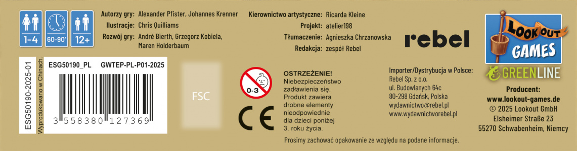- Mniejsze pudełko, zajmujące mniej miejsca elementy oraz materiałowa plansza sprawiają, że grę można zabrać w podróż i bawić się, gdzie tylko się chce!