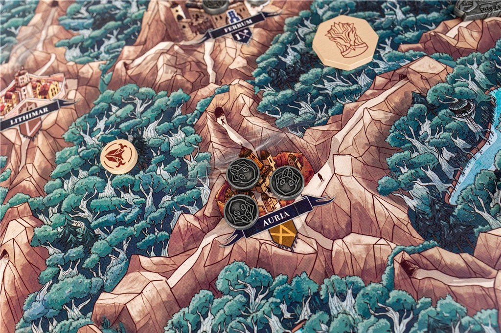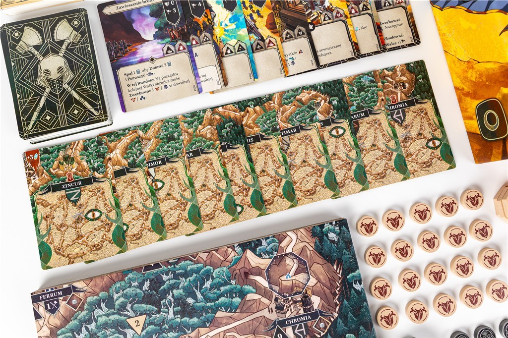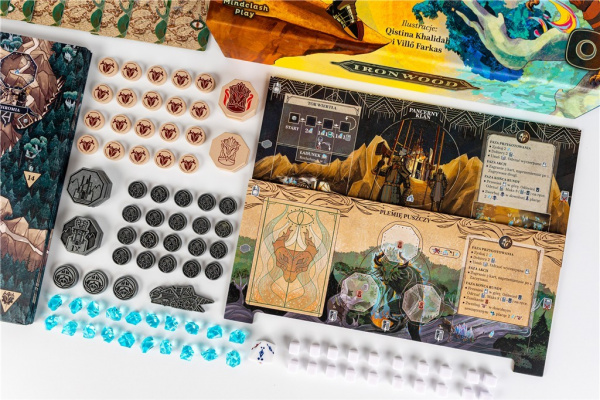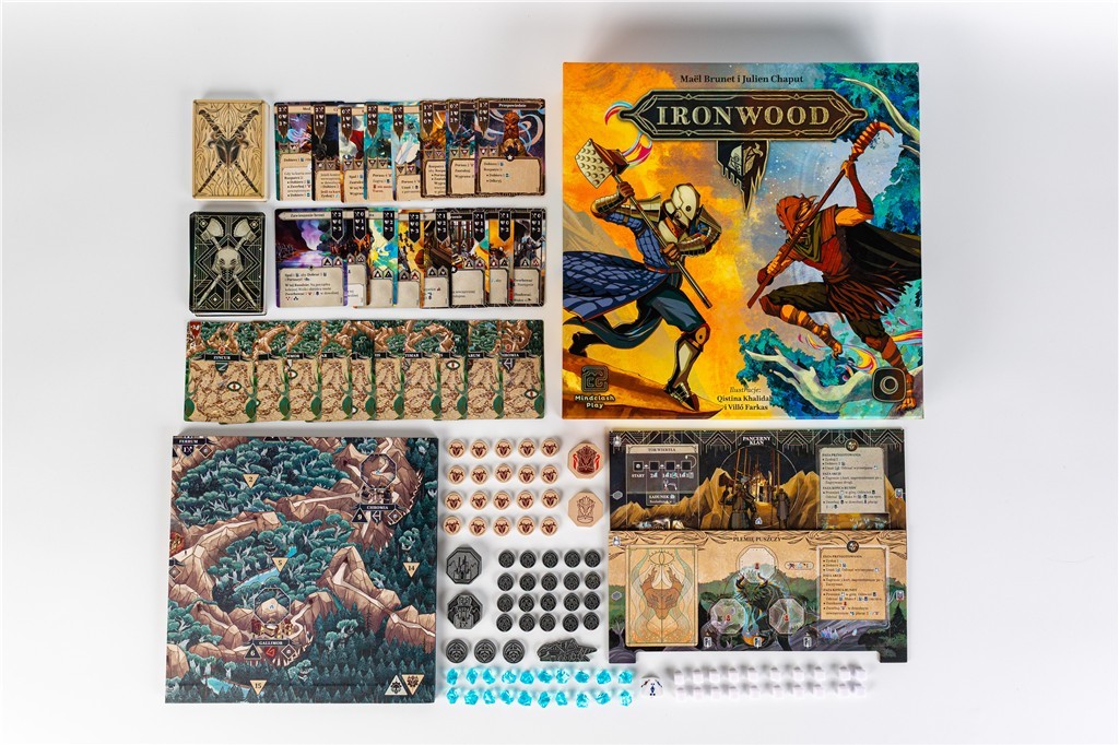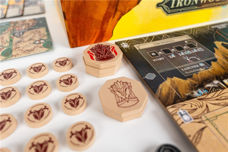 - Drewno kontra metal - Czerp przyjemność z operowania komponentami Ironwood, które - dzięki podziałowi na drewno dla jednej i metal dla drugiej frakcji - nie tylko dobrze wyglądają, ale świetnie oznaczają strony i zwiększają czytelność rozgrywki.