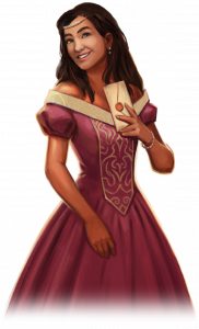 - Karta na ręce symbolizuje postać, która aktualnie niesie nasz list. Ta postać może się jednak zmienić w trakcie rundy, w miarę jak będziemy dobierać i zagrywać karty, a także w efekcie działań innych graczy.