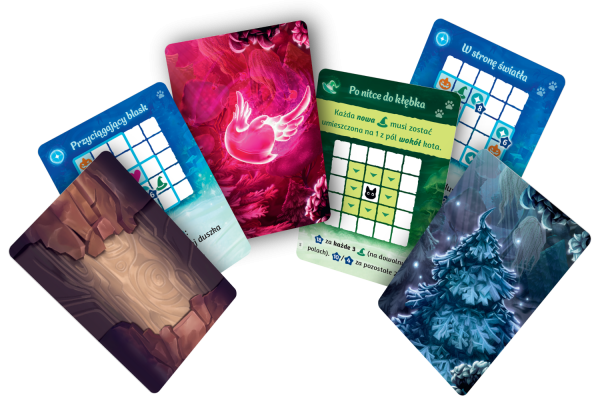 - Każdy rodzaj duszków ma własną talię celów, podobnie z resztą jak lasy, a w pojedynczej rozgrywce używamy tylko niektórych kart. Dzięki temu poszczególne rozgrywki pozostają ciekawe i stanowią wyzwanie nawet po wielu rozegranych partiach.
