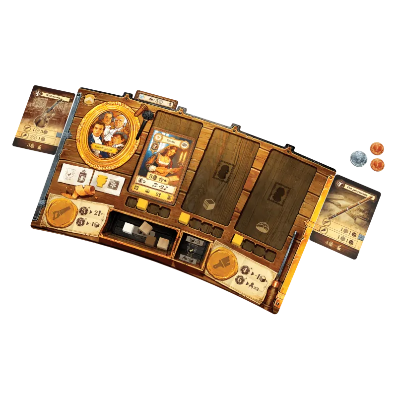 W trakcie rozgrywki wcielasz się w mistrza lutnictwa, zarządzając zasobami, rozwijając swój warsztat i podejmując strategiczne decyzje, które zadecydują o Twoim sukcesie. Gra łączy mechaniki rozmieszczania pracowników, ukrytej licytacji i zarządzania materiałami, oferując głębokie doświadczenie taktyczne i wiele dróg do zwycięstwa. Każda runda to balansowanie pomiędzy budową instrumentów, pozyskiwaniem patronów oraz doskonaleniem umiejętności czeladników — a wszystko to przy dbałości o harmonię pomiędzy tematem a mechaniką.