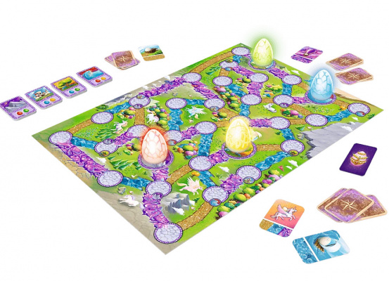 Gracze zagrywają karty i przesuwają jajka po baśniowym świecie jednorożców. Kiedy dotrzecie do jednej z krain, jajka pokażą prawdziwe oblicza i zaświecą unikatowymi kolorami. Czy zdołacie zapamiętać ich położenie i doprowadzić do odpowiednich miejsc?