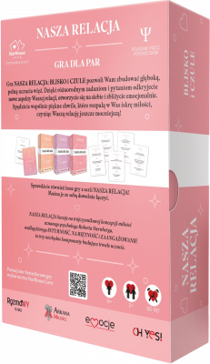 Gra Nasza relacja: Blisko i czule to nie tylko narzędzie do pogłębiania więzi, ale również świetna zabawa. Dzięki kreatywnym zadaniom i wyzwaniom, które zawierają karty, wspólnie spędzicie czas w pełni skoncentrowani na sobie, co pozwoli na budowanie emocjonalnej bliskości. Ciepłe, zabawne momenty i pozytywne niespodzianki na pewno Was zaskoczą i rozbawią, a zarazem umożliwią jeszcze głębsze poznanie się. Każda runda gry wprowadza Was w nastrój do dalszego wspólnego działania i cieszenia się sobą, dzięki czemu na pewno będziecie chcieli wracać do niej wielokrotnie.