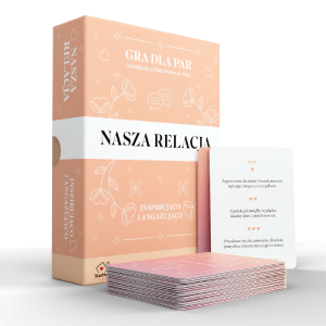 Chcecie spędzać wspólnie więcej czasu w sposób angażujący i pełen radości? Gra Nasza relacja: Inspirująco i angażująco to doskonały sposób, by odkrywać, co Was łączy, oraz inspirować się do działania. Dzięki tej grze możecie pogłębić Waszą więź, poznawać się nawzajem w nowych, kreatywnych kontekstach i wspólnie marzyć o przyszłości. Wystarczy wygodnie się rozsiąść, wziąć karty do ręki, a po chwili znajdziecie się w pełnym pasji i energii doświadczeniu. NASZA RELACJA to idealna okazja do tego, by wnieść świeży powiew do codziennych obowiązków i przełamać rutynę w relacji.