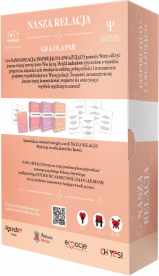 Warto pamiętać, że elementy gry można łączyć z innymi grami z serii NASZA RELACJA, co pozwala na pełniejsze rozwijanie Waszych więzi w różnych obszarach - od intymności po zaangażowanie. Każda gra to kolejna okazja do budowania silniejszego związku, odkrywania siebie nawzajem i wspólnego stawiania czoła wyzwaniom.