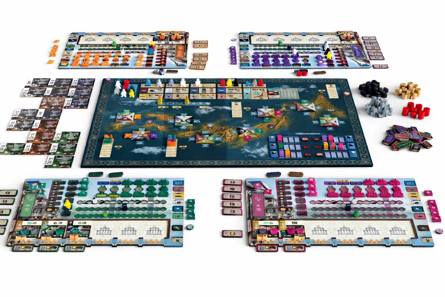- 4 plansze graczy (zaibatsu)
