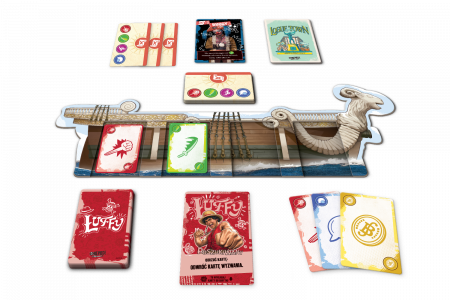 - Karty wyzwań to specjalna talia umieszczona poniżej talii przygód. Aby ukończyć kartę wyzwania, musimy zebrać wskazany na niej zestaw symboli – istotny jest zarówno ich rodzaj, jak i kolejność ułożenia. W tym celu będziemy zagrywać karty z ręki na planszę Going Merry, a także przemieszczać je dzięki rozmaitym efektom.