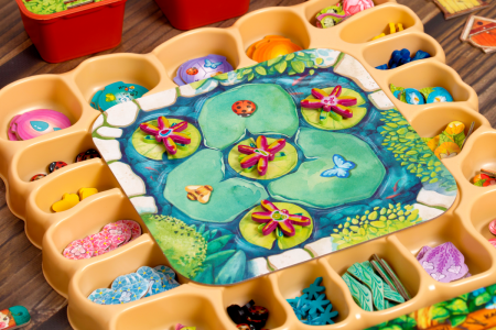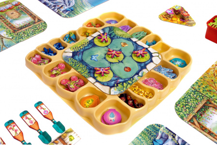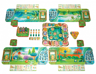 - Każdy z graczy zaczyna z własną planszą ogrodu – różnią się one stylem i kolorystyką, jednak oferują takie same możliwości początkowe. Oprócz tego otrzymujemy też po jednej pergoli i kaskadzie, które także stanowią obszar gry.