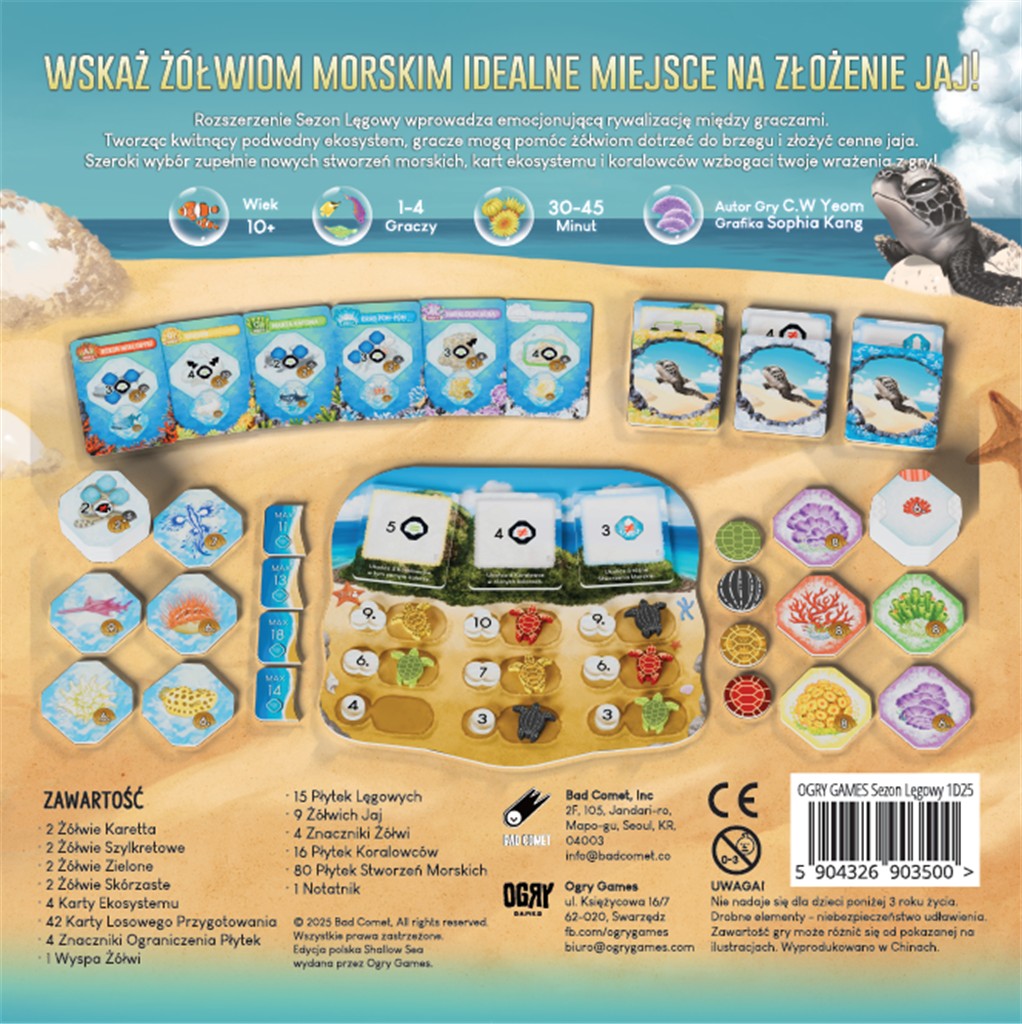 W pierwszym rozszerzeniu natura budzi się do życia jak nigdy dotąd! Sezon lęgowy wprowadza dodatkową planszę - Wyspę Żółwi – unikalny obszar, do którego migrują morskie żółwie. Te majestatyczne stworzenia nie tylko wpływają na rozgrywkę, ale także oferują nowe możliwości punktacji i interakcji między graczami.