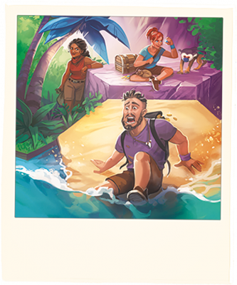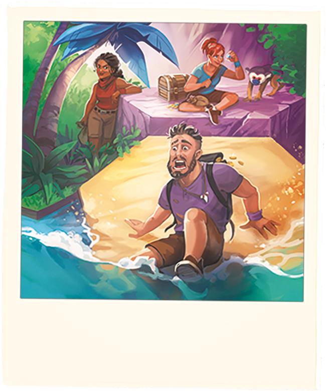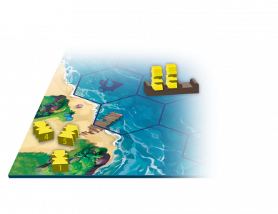 - Fazę akcji, podczas której poruszają się poszukiwacze skarbów lub tratwy. W dowolnym momencie tej fazy gracz może też odrzucić dowolną liczbę płytek wyspy, które ma przed sobą, aby skorzystać z ich zdolności.