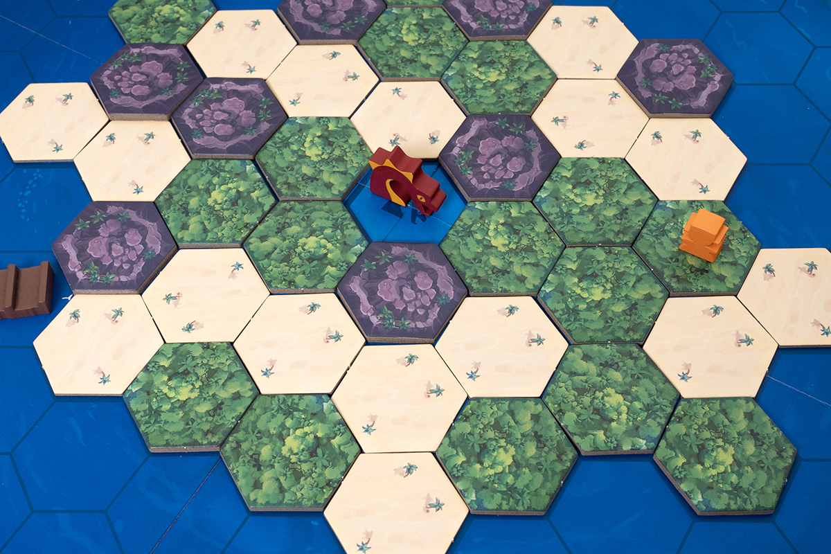 - Fazę zatapiania wyspy, kiedy usuwa się z planszy jedną z płytek i w tajemnicy sprawdza jej efekt. Jeśli był natychmiastowy, gracz musi rozpatrzyć go od razu, natomiast inne zdolności można zachować na później.