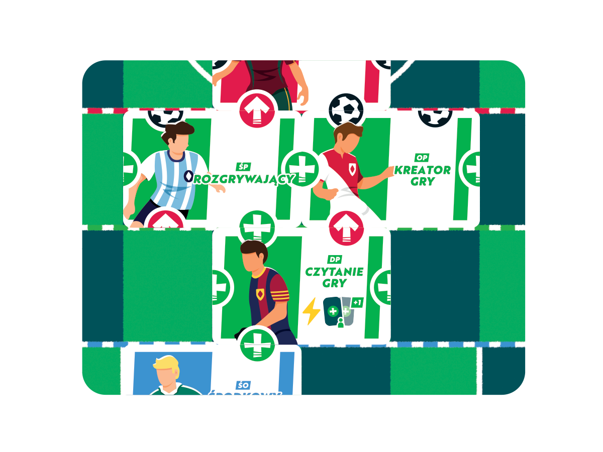 W swojej turze gracz umieszcza Kartę Zawodnika na planszy boiska. Umieszczenie Karty Zawodnika oznacza, na czym obecnie skupia się drużyna i który zawodnik jest centralną postacią taktyki. Każda Karta Zawodnika ma półokrągłe symbole taktyczne, które można łączyć z symbolami na innych Kartach Zawodników. W związku z tym, w miarę upływu czasu, każda drużyna będzie miała więcej symboli taktycznych w zależności od kombinacji Kart Zawodników.
