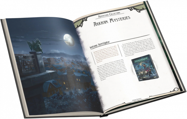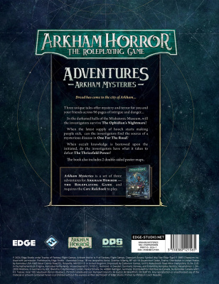 Arkham Horror RPG: Arkham Mysteries to zestaw 3 samodzielnych przygód przeznaczonych dla początkujących badaczy. Każda z nich ma nieco inną długość, jednak praktyczny podział na sceny zaprojektowane tak, by zajmowały około godziny, pozwala dopasować rozgrywkę do tego, ile czasu faktycznie mamy. Zbierz przyjaciół, przygotujcie swoje postacie i wspólnie szykujcie się na poszukiwanie prawdy w mroku otaczającym Arkham!
