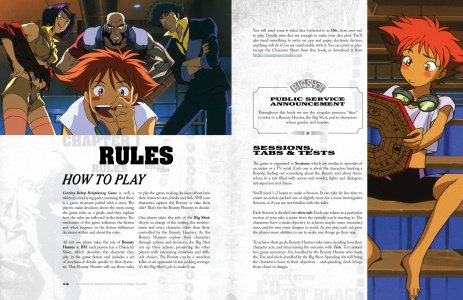 - Rozdział wprowadzający dla nowych graczy, przedstawiający zasady gry na przykładach opartych na fabule anime, opisujący poszczególne odcinki jako sesje RPG.