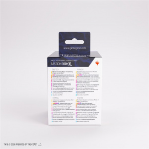 Bastion 100+ XL to bardzo kompaktowe i solidne pudełko na Twoją talię. Mieści do 100 kart podwójnie zakoszulkowanych z grubszą koszulką wewnętrzną. Sprawdzi się idealnie do różnego rodzaju gier karcianych. Dzięki półprzezroczystym materiałom górna karta w tali jest w pełni widoczna.