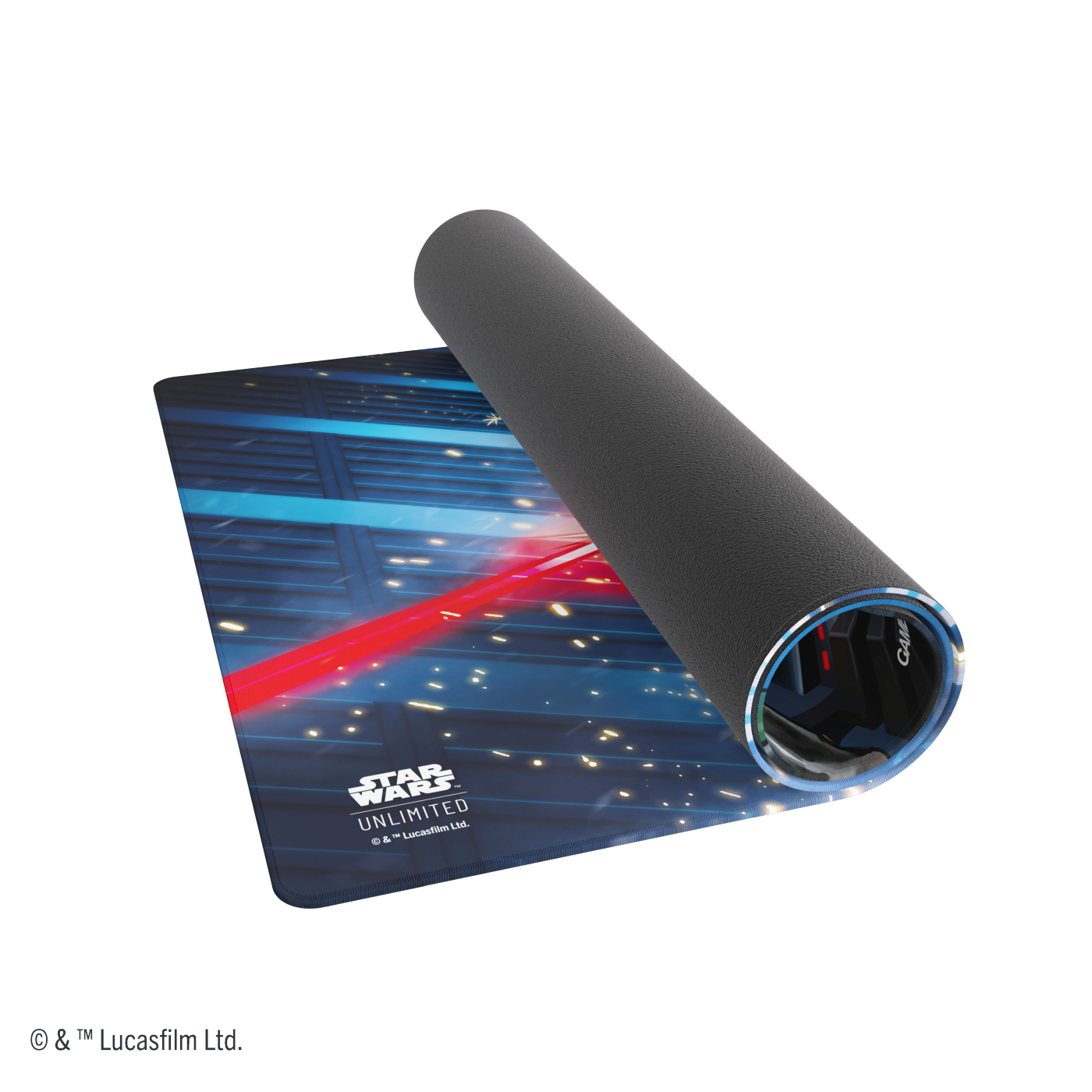 Mata do gry zapewniająca przestrzeń oraz porządek w pełnej wrażeń grze Star Wars: Unlimited. Produkt wykonany jest z wysokiej jakości gumy antypoślizgowej, pozwoli cieszyć się rozgrywką dosłownie wszędzie - na kuchennym stole, na podłodze czy na kokpicie statku kosmicznego. Mata ta będzie stanowić idealne tło dla Twoich podbojów i przygód w odległej galaktyce. Doświadczeni gracze z pewnością pokochają unikalną powierzchnię, pozwalającą na błyskawiczne obracanie i płynne przemieszczanie zakoszulkowanych kart.