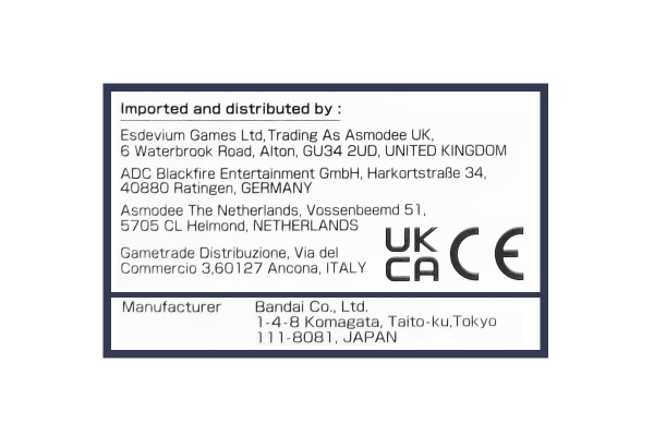 - BANDAI CO., LTD. Address: 1-4-8 Komagata, Taito-ku, Tokyo, 111-8081, customerservice@bntca.com